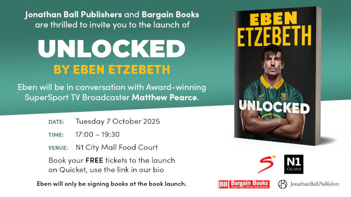 Don’t miss the Cape Town launch of Unlocked by Springbok legend Eben Etzebeth! (7 Oct)