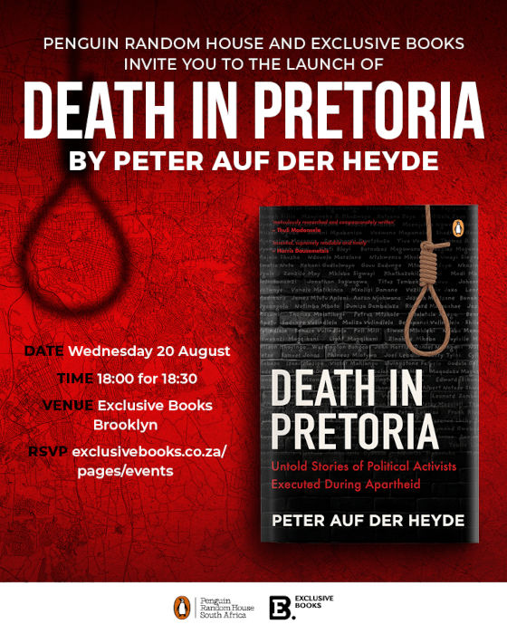 Penguin Random House invite you to the launch of Death in Pretoria: Untold Stories of Political Activists Executed During Apartheid by Peter Auf der Heyde.