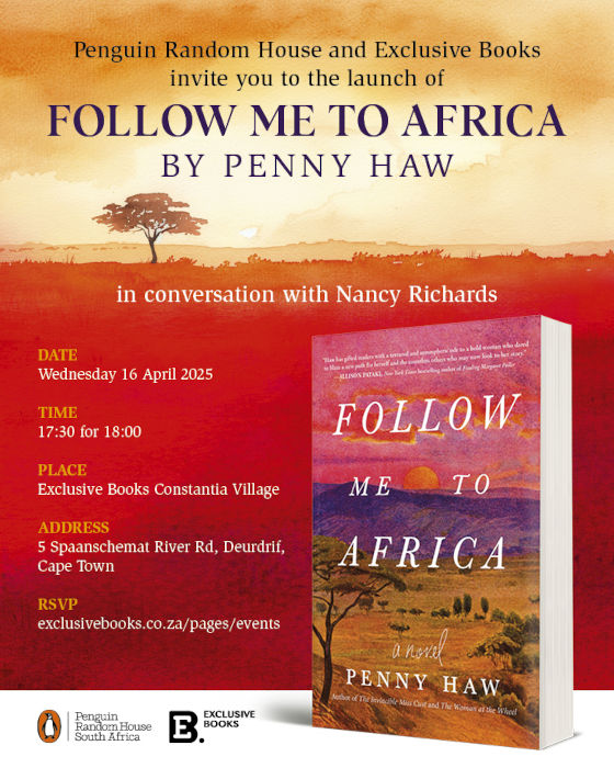 Penguin Random House and Exclusive Books invite you to the launch of Penny Haw’s new novel Follow Me to Africa!