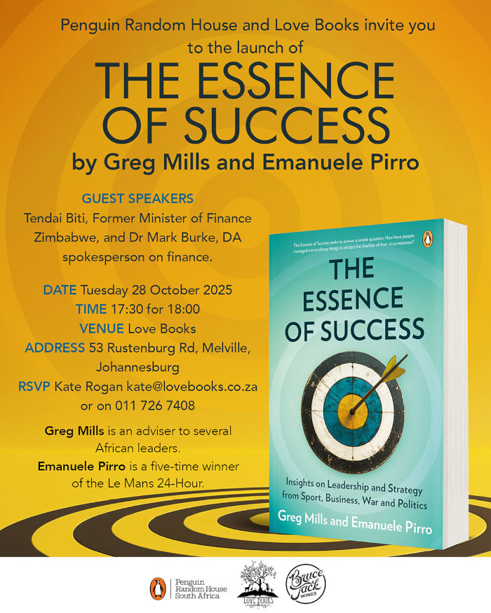 Don’t miss the launch of The Essence of Success by Greg Mills and Emanuele Pirro at Love Books (28 Oct)