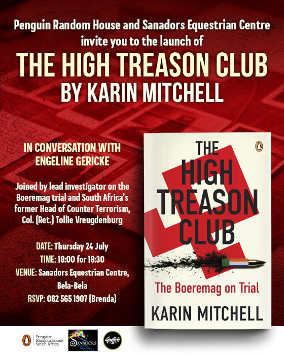 Don’t miss the launch of The High Treason Club: The Boeremag on Trial by Karin Mitchell in Bela-Bela (24 Jul)