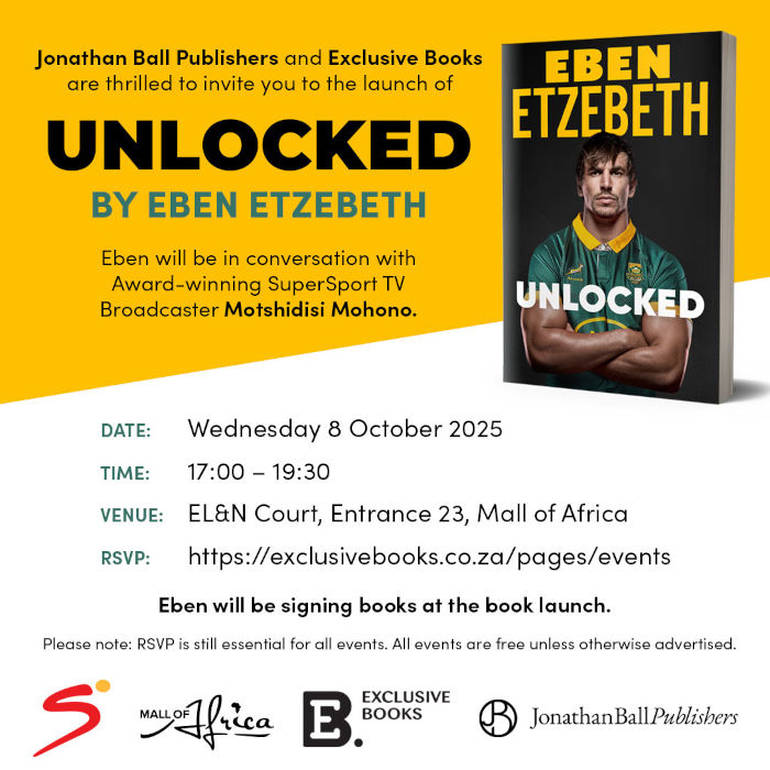 Join Jonathan Ball Publishers at the Mall of Africa for the launch of Unlocked by Eben Etzebeth!